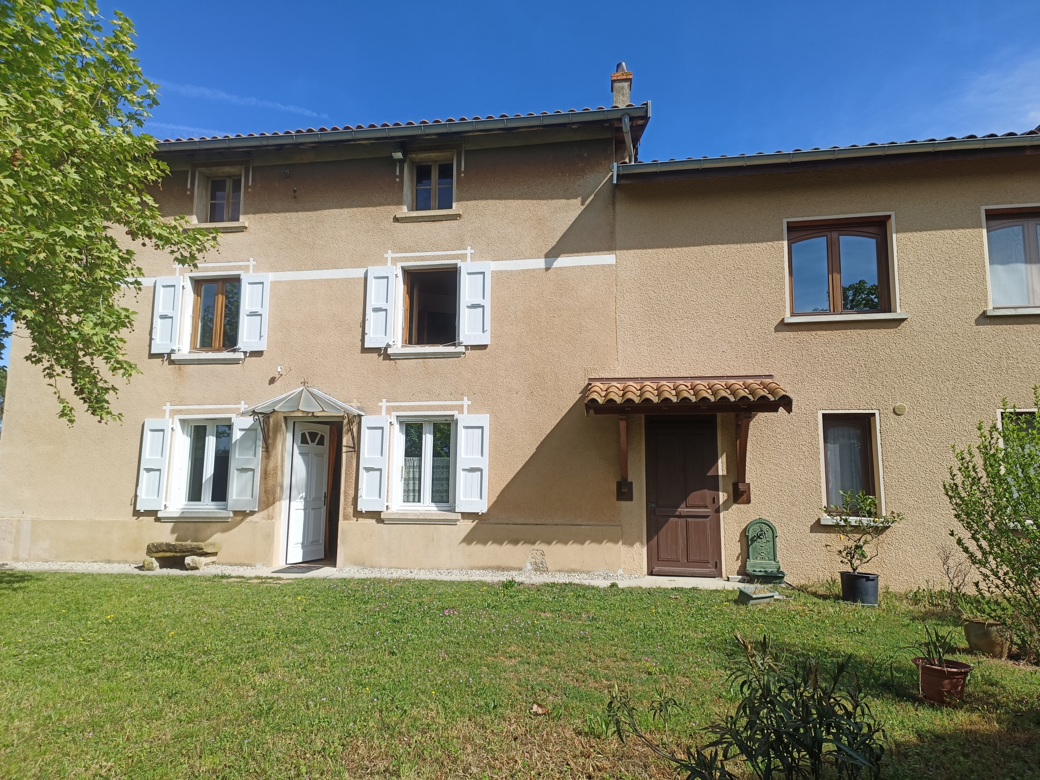 NOUVEAUTE : sur la commune de St MAURICE L EXIL, 50 kms sud de Lyon, 15 minutes échangeur de Reventin dans un environnement calme, très belle maison 198m² habitables en 2 parties, La premiere maison en pisé, restaurée dans le respect des exigences du pisé, elle se compose : REZ DE CHAUSSEE : hall d'entrée, un séjour 19m²; une cuisine équipée récente (Mobalpa)18m² 1er ETAGE : 3 chambres dont deux avec placards (13,5-10,5-8,60m²), une salle de douches, un wc, 2èm partie : une grange aménagée en 2001 composée: REZ DE CHAUSSE : une chambre 14m², une salle de douches, un wc, une buanderie avec espace chaufferie 21m² 1ER ETAGE : un salon 35m², un jardin solaire 21m² (possibilité d'aménager différemment) un garage 63m² , une belle cave voutée (22m²), un appentis bois 19m² double vitrage bois , volets alu et volets bois, aspiration centralisée, belle fontaine en fonte dans le jardin, fibre optique le tout sur une belle parcelle de terrain joliment arborée, avec espace jardin très fort potentiel pour les visites contactez l'agence DESPIERRE IMMOBILIER 06.19.37.53.38 Les informations sur les risques auxquels ce bien est exposé sont disponibles sur le site Géorisques